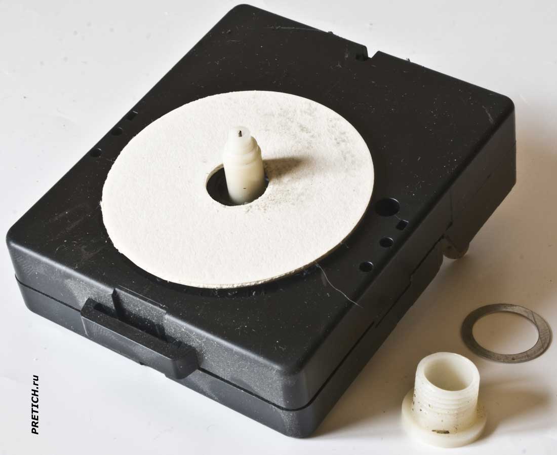Чтобы снять механизм с корпуса, надо открутить вот такую пластмассовую гайку, это несложно.