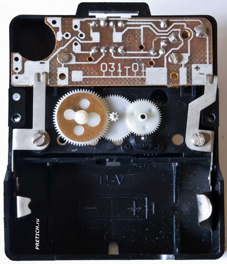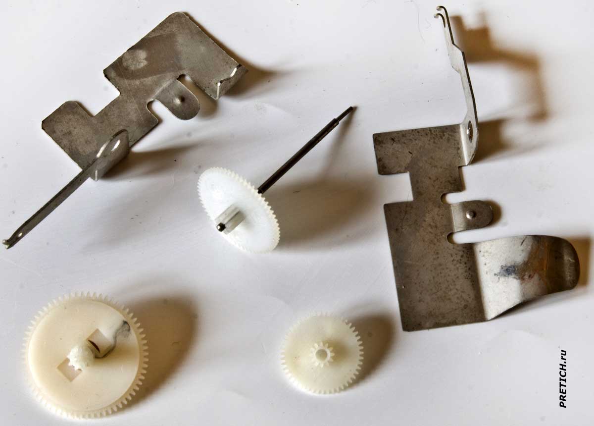 Вытащили шестерни и стальные пластина, которые работают как контакты для батарейки, и как проводники...