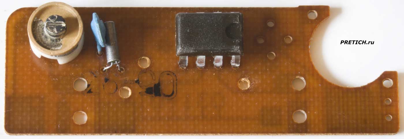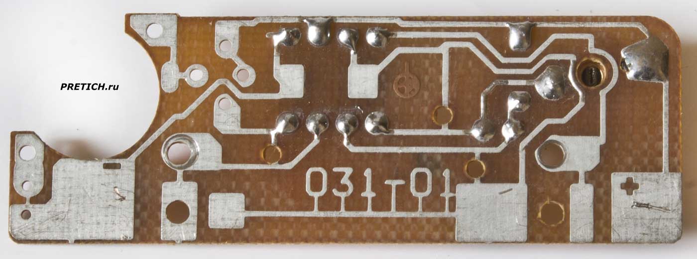 Плата электроники, с одной стороны пусто. Маркировка на плате 031-01 и неведомый мне логотип... в правом верхнем углу отверстие для регулировки.