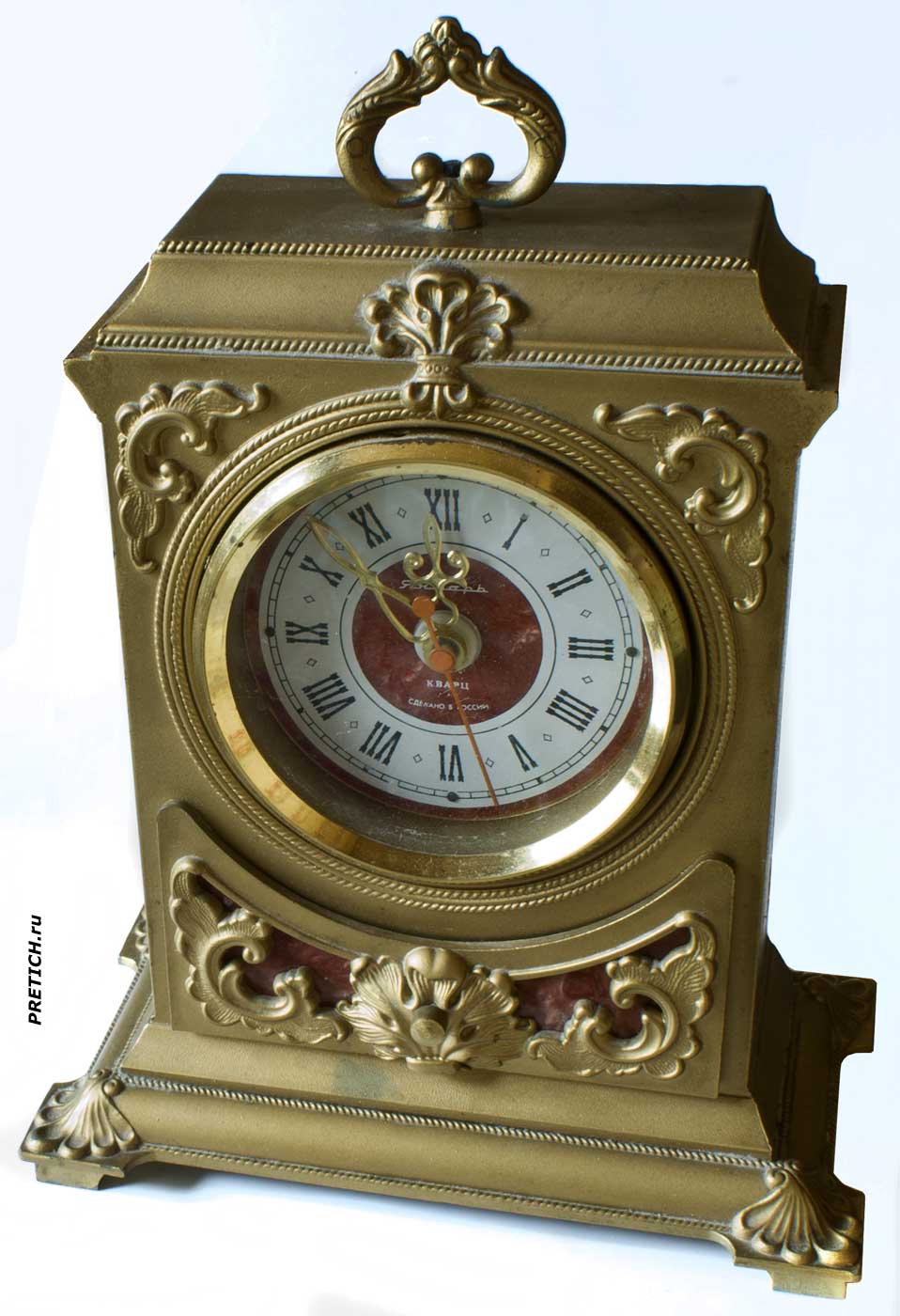 Итак, это в первую очередь настольные часы, их можно конечно подвешивать за ушко сверху, но это как-то не то... Оформлены они с претензией на барокко, но скромно и даже асктично...