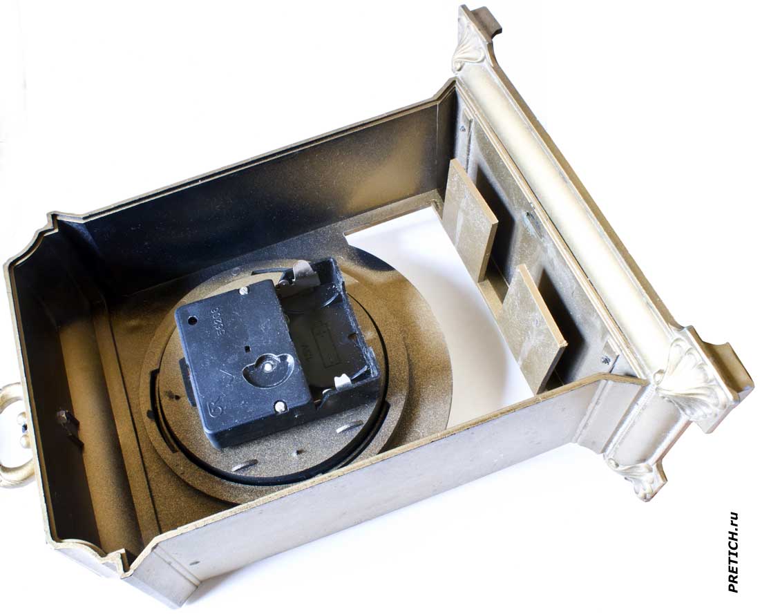Прежде чем приступить к полной разборке, несколько слов. Корпус сделан из дешевой пластмассы покрашенной бронзовой пудрой. Перестройка и закат СССР не могли не сказаться на качестве - оно повсеместно падало... И эти часы хорошо иллюстрируют эти процессы.