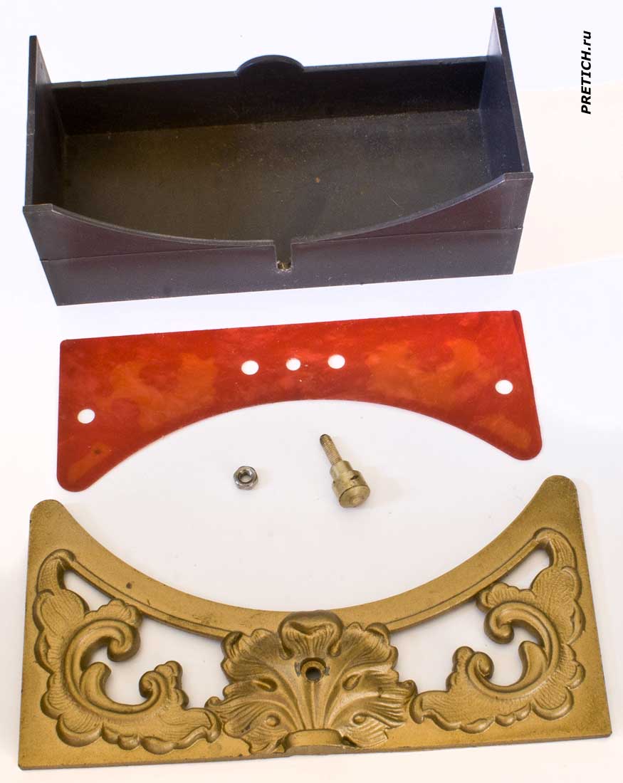 Механизм снят, заодно разбираем шкатулку - она состоит из таких деталей...