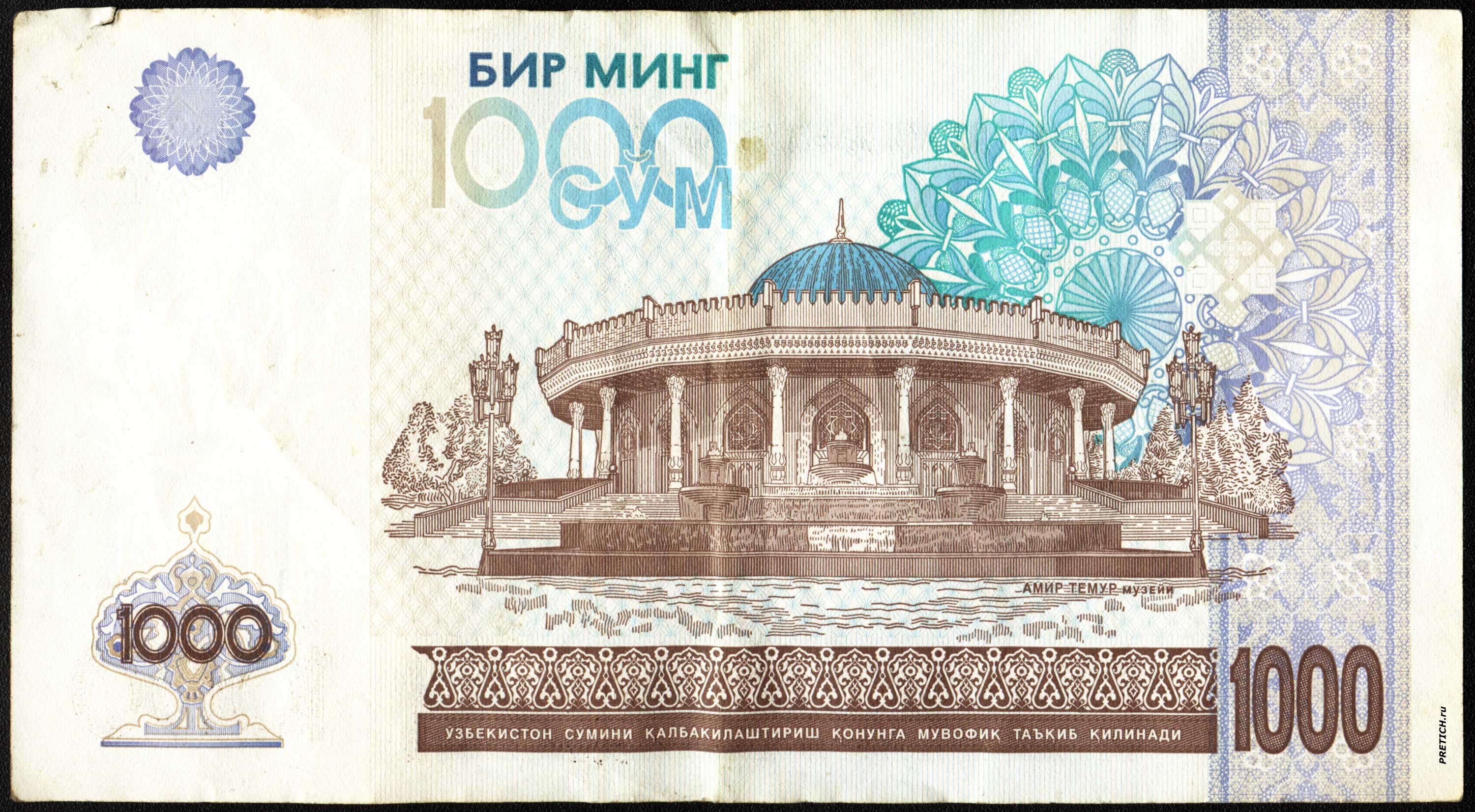 Узбекские 1000 сумов 2001 года здание музея Тимуридов в Ташкенте