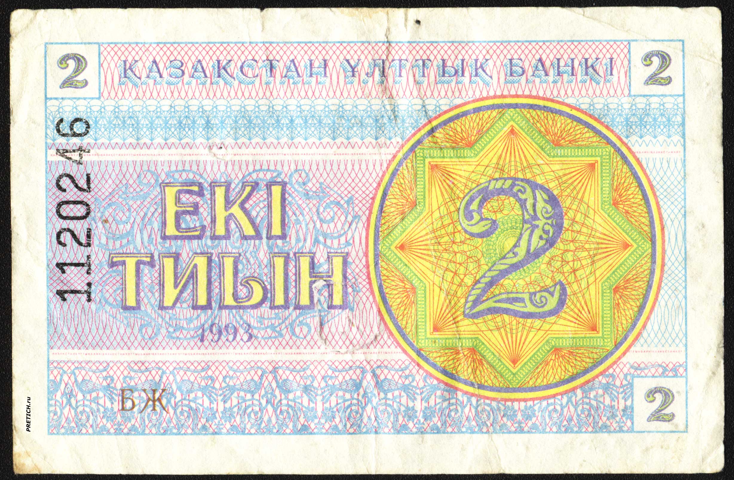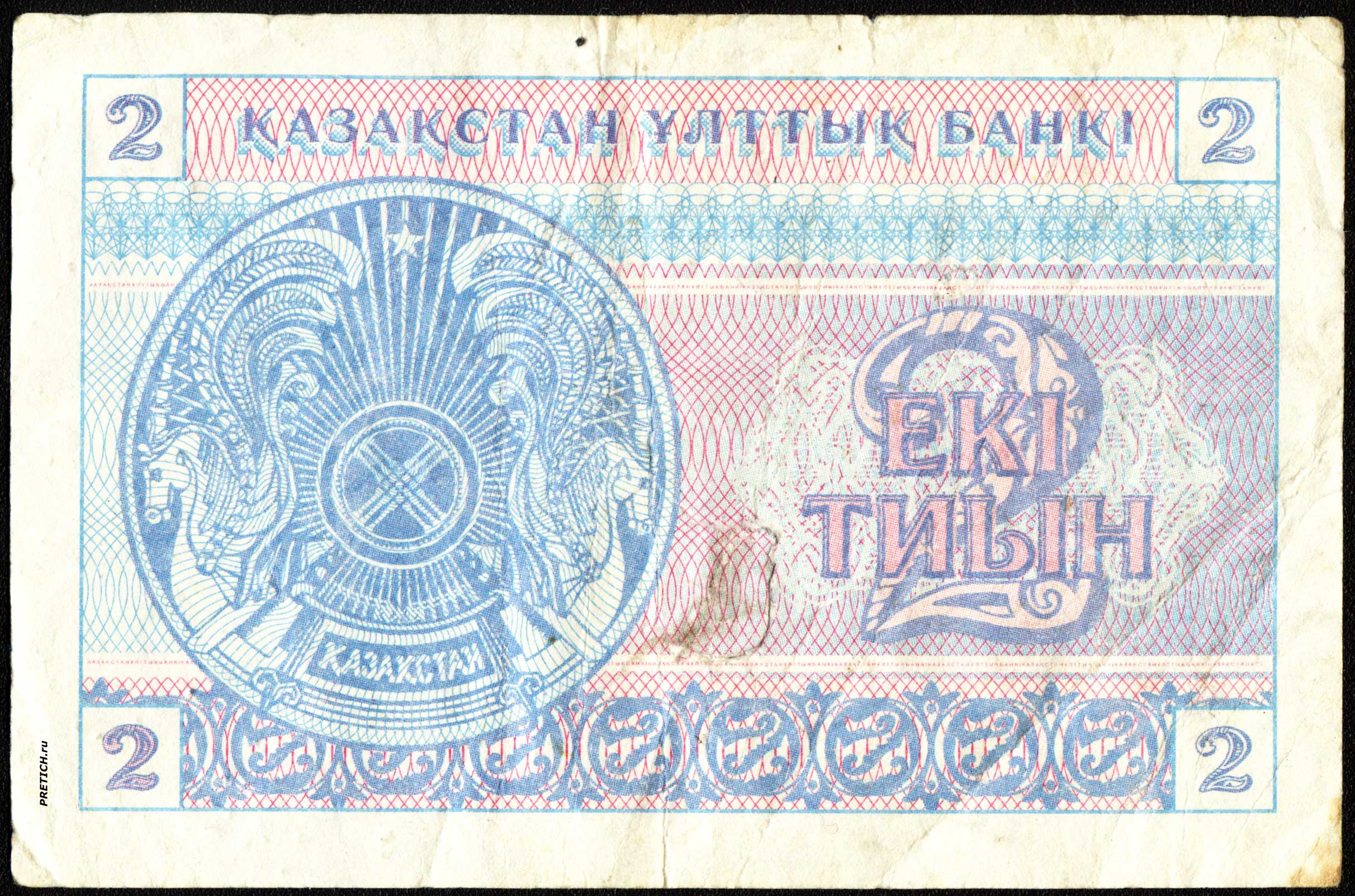 описание бумажных денег 2 тиына Казахстана 1993 год