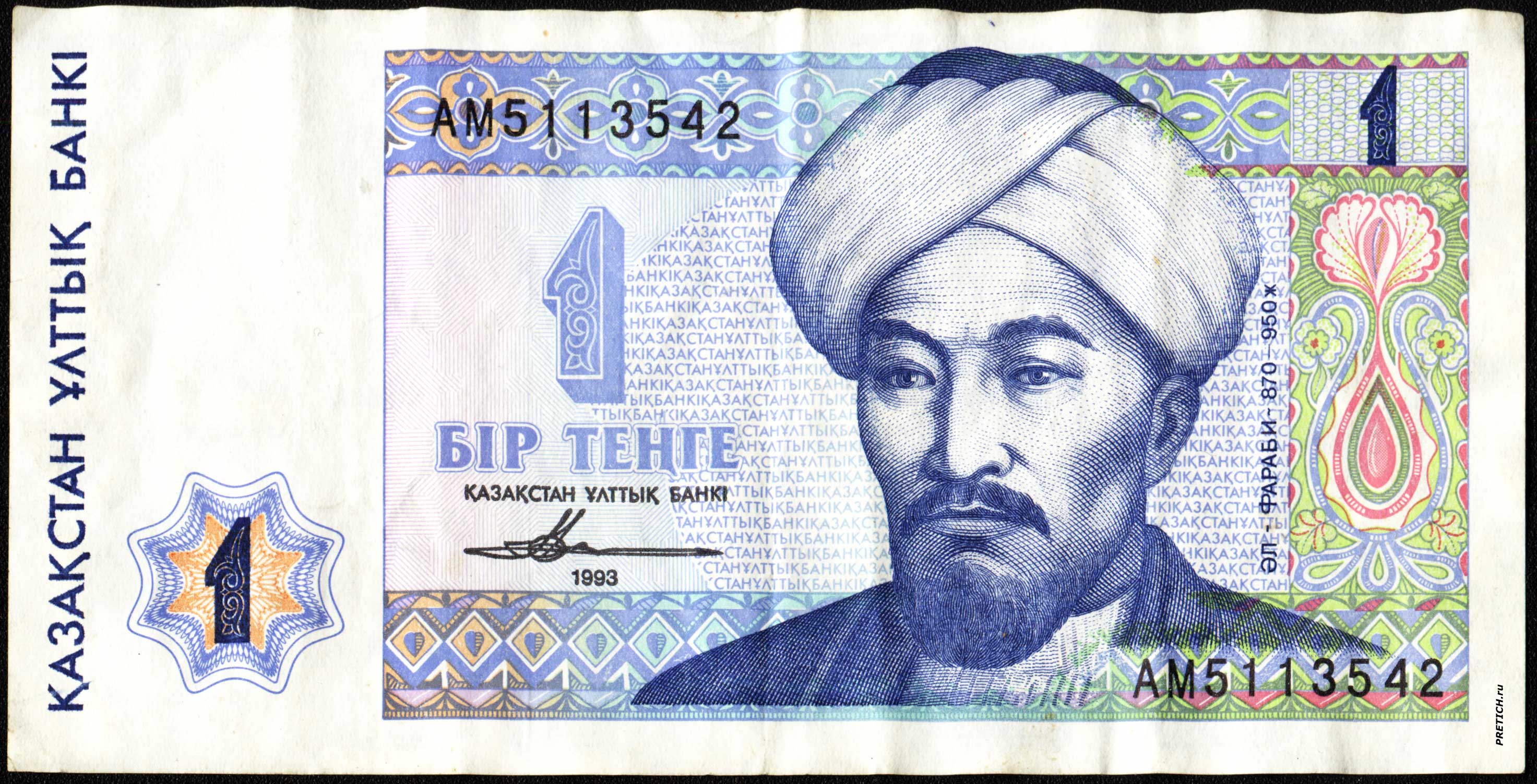 На банкноте изображен условный портрет Аль-Фараби, ученый, философ, математик и т.д. Востока раннего Средневековья. По сложившейся традиции в Казахстане считают, что он родился на территории нынешнего Казахстана...