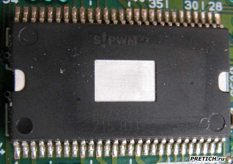 Рядом чип SIPWM BD7957FS - это драйвер двигателей... эта микросхема и микроконтроллер, через прокладки прижимаются к стальному корпусу привода, который служит для них радиатором охлаждения.