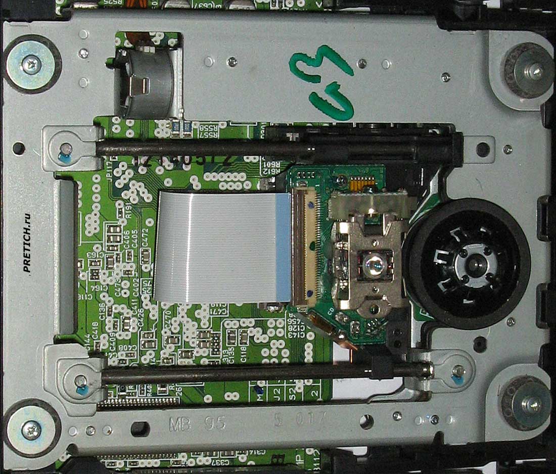 Теперь остался блок лазерной головки. Все это смонтировано на стальном шасси, на нем выбито MB 95 5 017.