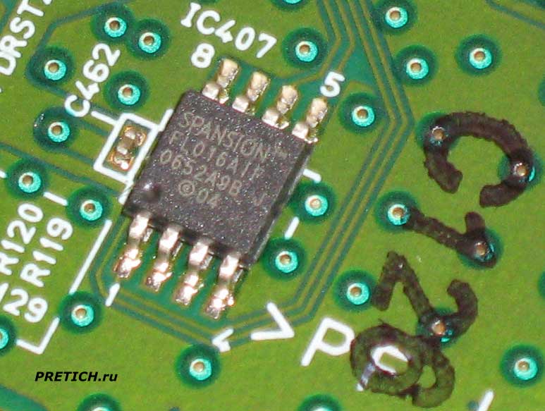 Еще микросхема на этой стороне платы: SPANSION FL016AIF или FL016A1F флэш-память...