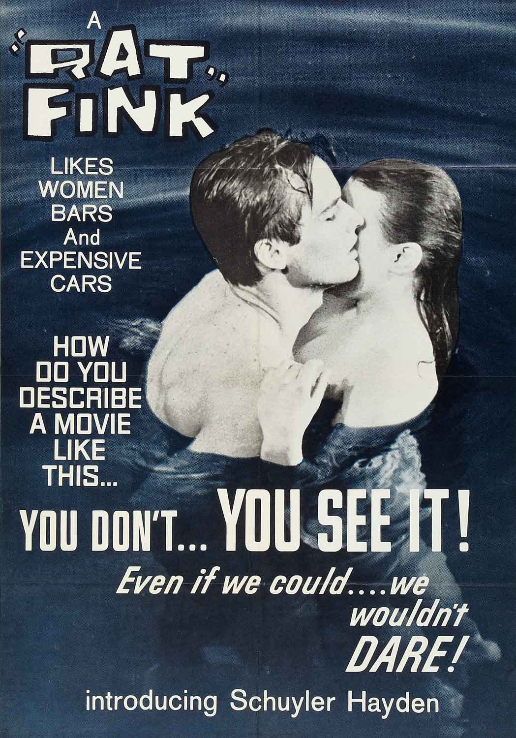Yet “Fink” in the last analysis depends on actor Schuyler Hayden who is in almost every frame and who sustains an underpinning of title role with a rare and real acting ability. The first film role for the 24-year-old unknown actor, (he is reported to have personally put up a substantial amount of the $20,000 budget) he comes across with total believability as the King Rat Fink of them all who claws his way to the top as a rock ’roll singer.