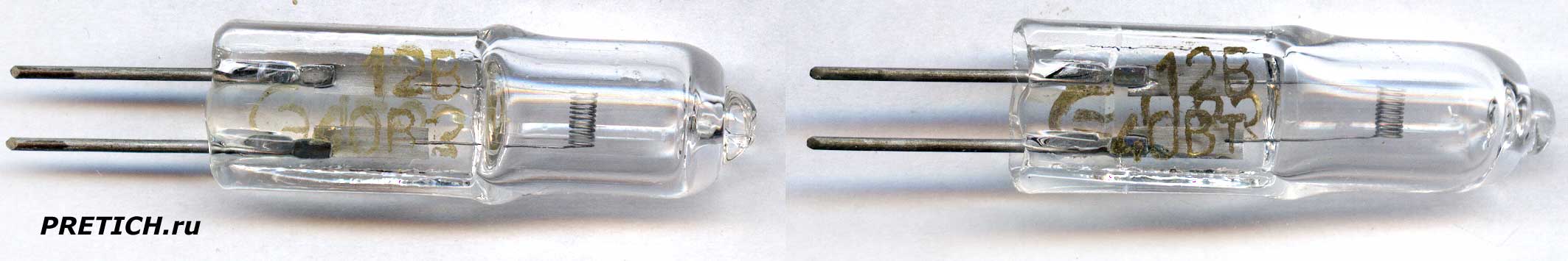 Сегодня мы познакомимся с очередными представителями советской промышленности - галогенными лампами накаливания КГМ 12-40, работающие от 12 вольт и выдающие номинальную мощность 40 Вт.