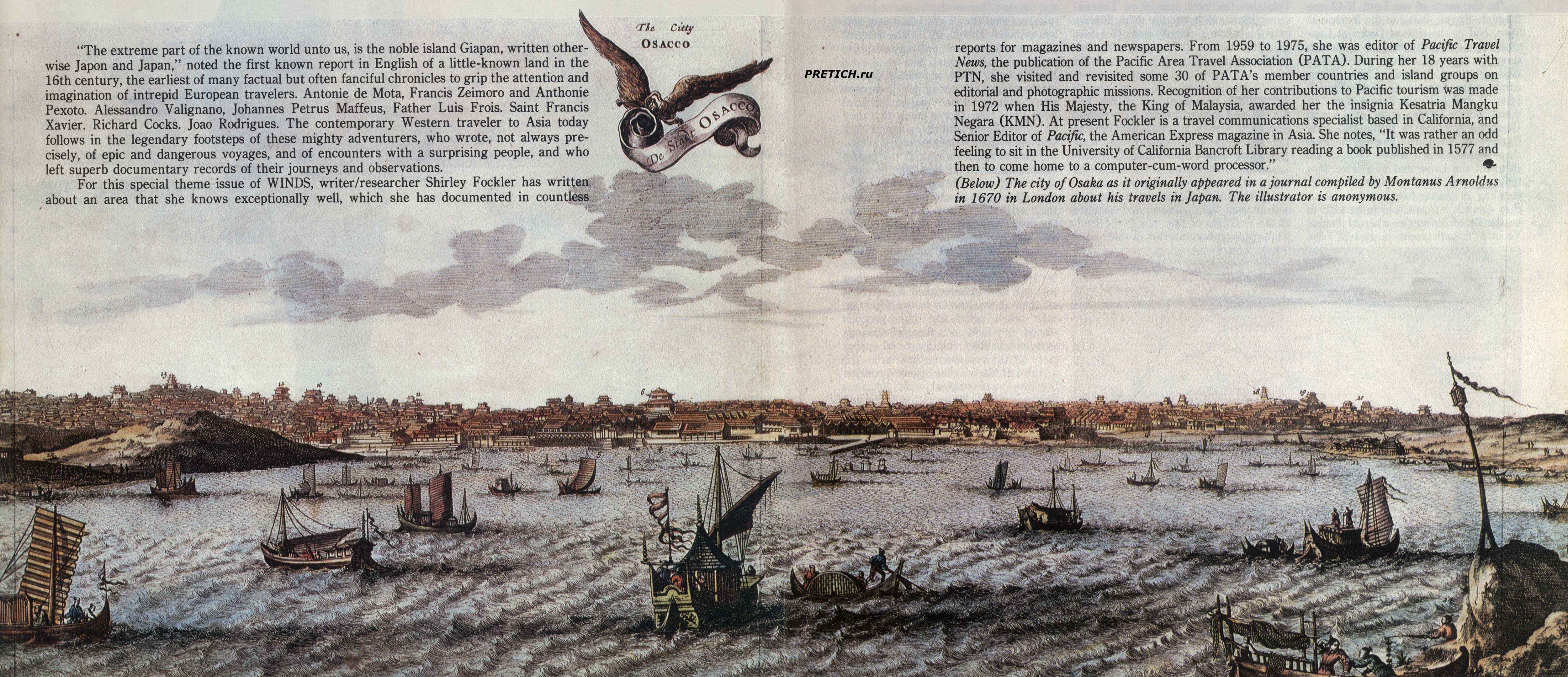 Город Осака, из книги Арнольдуса Монтануса о его путешествии по Японии, вышла в Лондоне в 1670 году. Автор иллюстраций неизвестен.