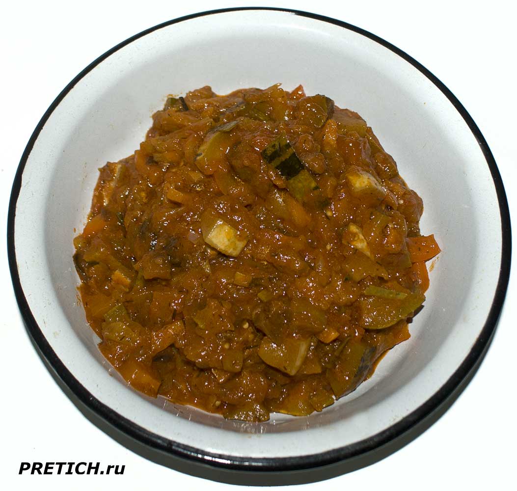 После того как выключим, кладем крошенный свежий или сухой укроп (можно тот и этот). Я еще люблю класть нарубленный чеснок (не давленный). Черный молотый перец... Потому я и назвал эту икру универсальной - в нее можно класть очень многое. Патиссоны, или картошку, колбасу и... в общем, примерно так. Использовать можно как самостоятельное блюдо или как гарнир.