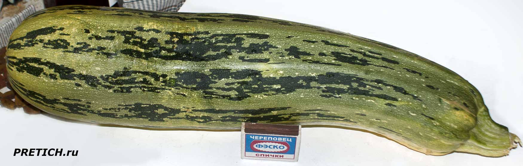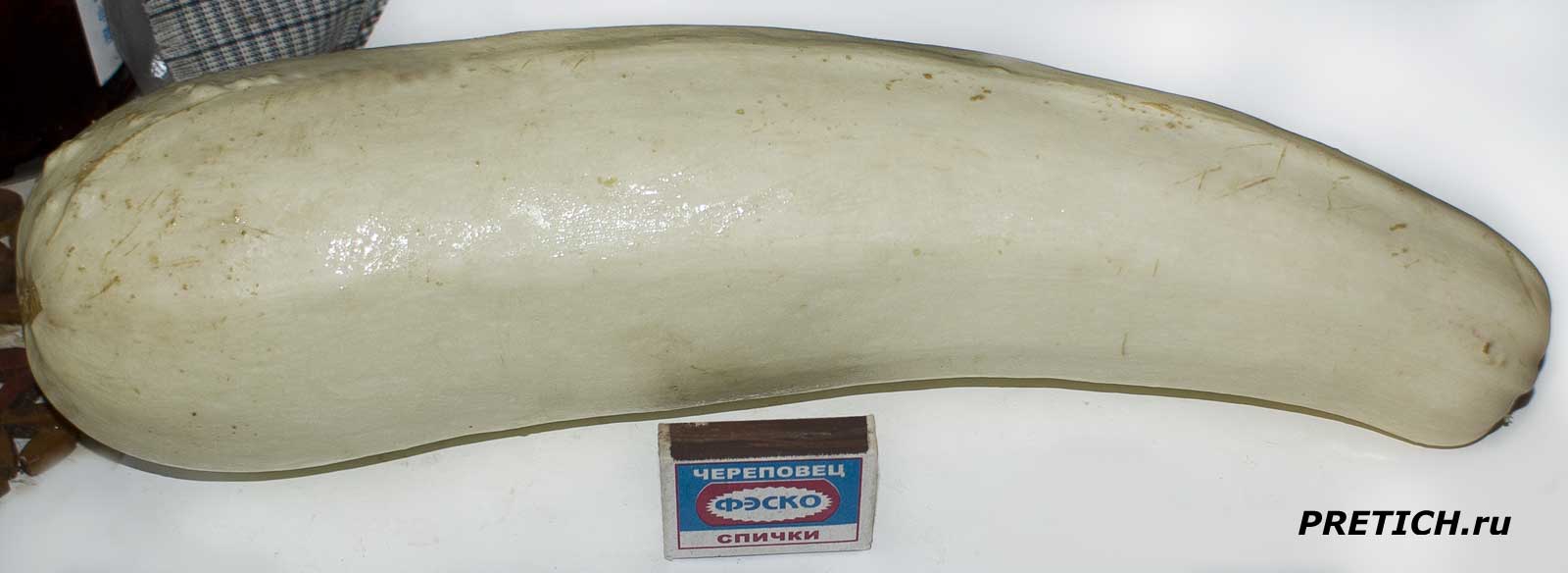 Это большой полосатый плод кабачка - понятно, это же родственник тыквы! Для наглядности масштаба - коробок спичек.