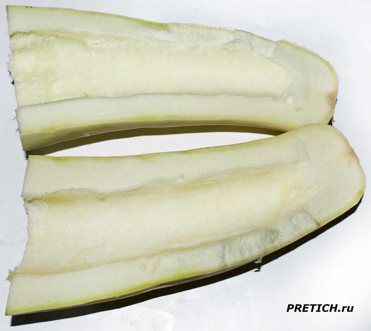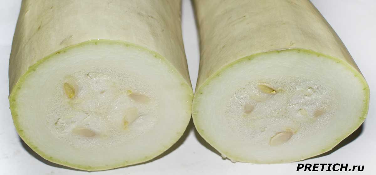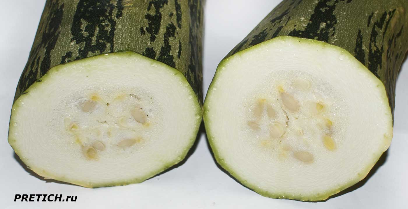 Моем и разрезаем - вот такой кабачок в разрезе... семена большие...