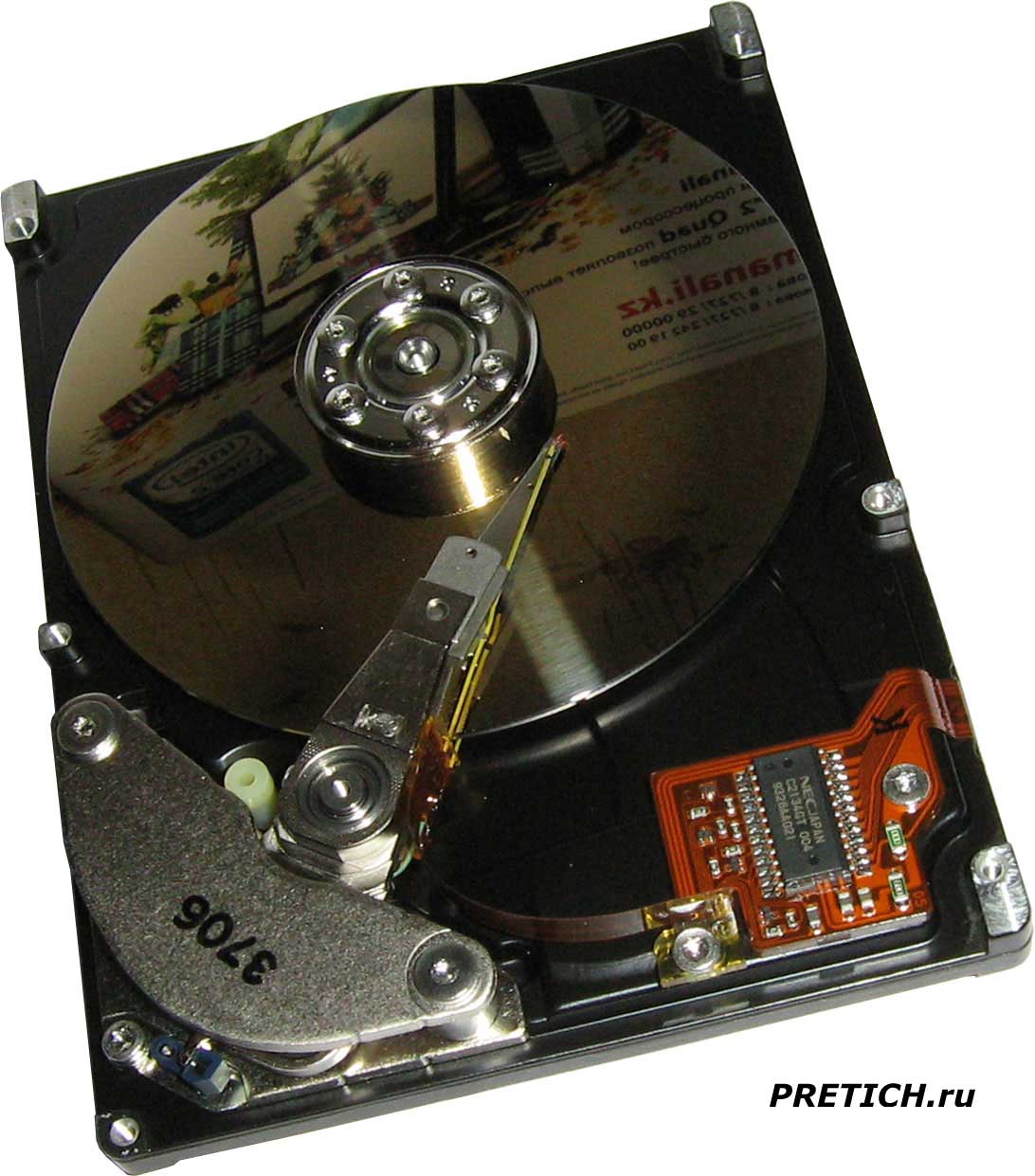 На самом деле я только предполагаю, что это жесткий диск от компании Samsung, Seagate, IBM или еще чего... Дело в том, эти фотографии еще 2007 года, потом произошел крах жесткого диска, на котором я сохранял материалы для десятков или даже тысяч статей. Все это, как я думал, пропало навсегда... Но мне повезло, совсем недавно мне в руки попался точно такой же жесткий диск - Seagate Barracuda 7200.10 ST3200820AS 200 Гб в совершенно рабочем состоянии. Я снял с него плату контроллера, со старого выпаял чип EEPROM памяти, и впаял на новую плату. Установил на HDD и... о чудо - все заработало! Однако рано радовался, файловая система на моем старом накопителе слетела, и восстановить удалось всего лишь треть данных...