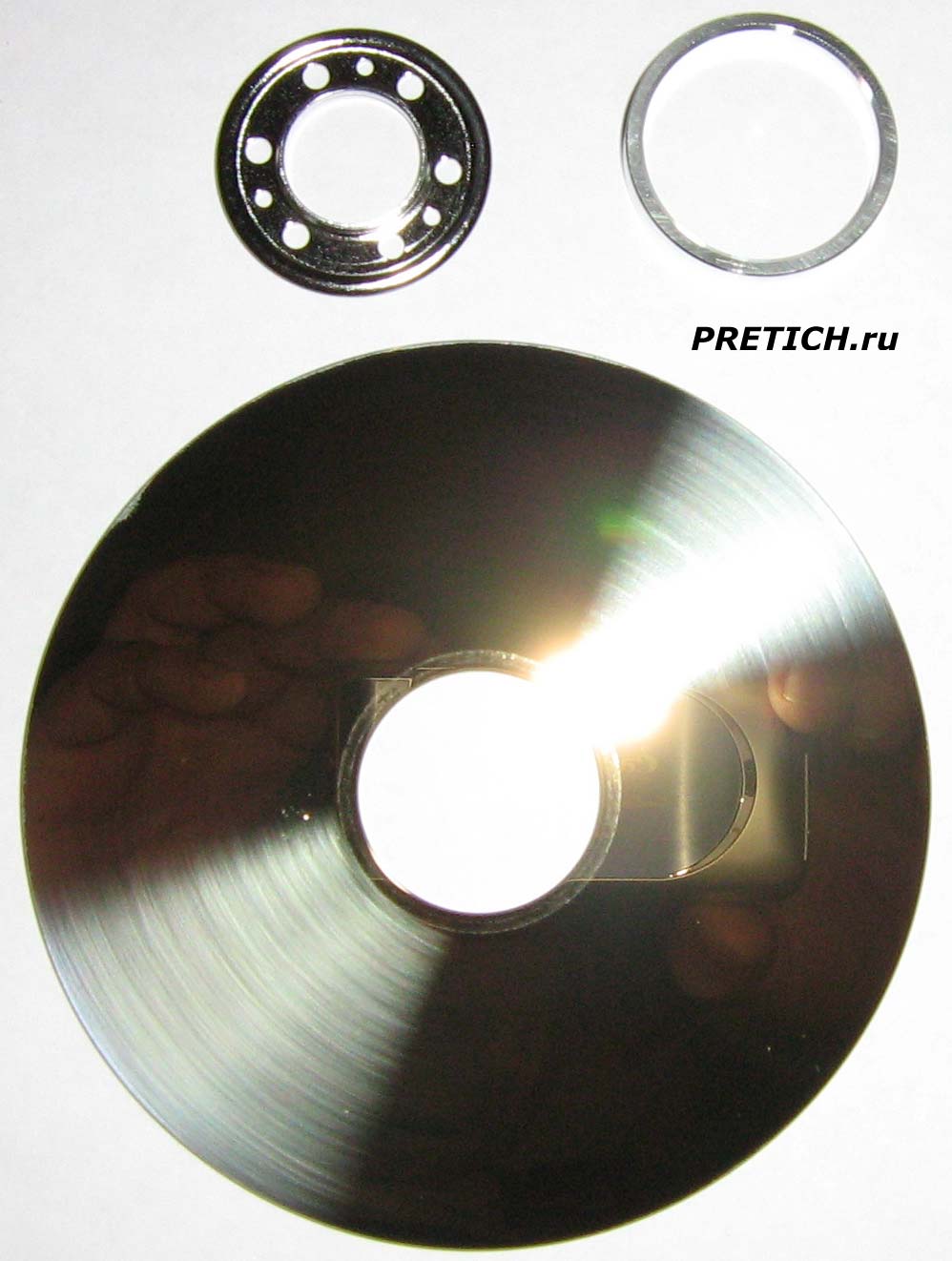 Откручиваем прижимной фланец с кольцами... снимаем пластину - на фото хорошо видны концентрические риски на его поверхности... Это не царапины - так оно изначально.
