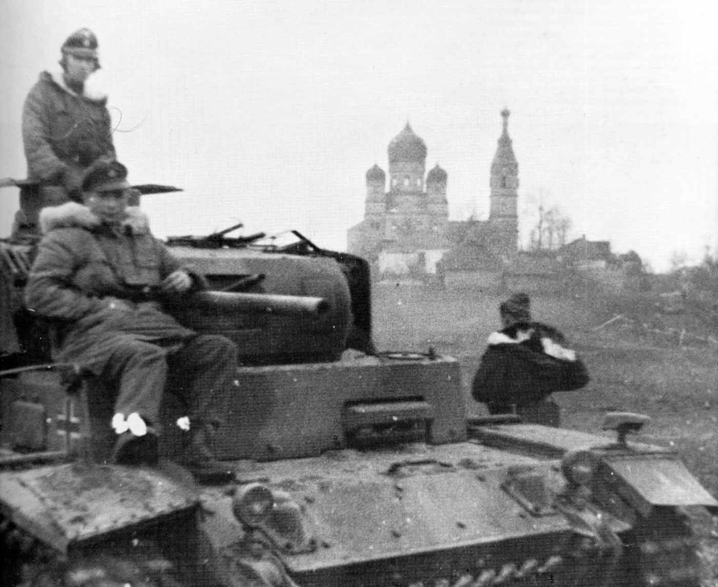Пока LAH и Reich переоборудовали во Франции, а Тотенкопф провел тихое лето на севере России, Викинг возглавил наступление немцев на Кавказ, снова входя в состав 1-й танковой армии фон Клейста. «Викинг» немедленно ввел в бой свой новый танковый полк. На окраине Ростова видны два PzKpfw Ills: слева Ausf J и справа PzBefWg III ausf H. На ближнем крыле Ausf J имеется знак отличия дивизии. Оба в общем Panzer Grey. Отсутствие основного вооружения командирского танка делает более важным камуфляж, отсюда и количество возимой листвы. [Бундесархив]