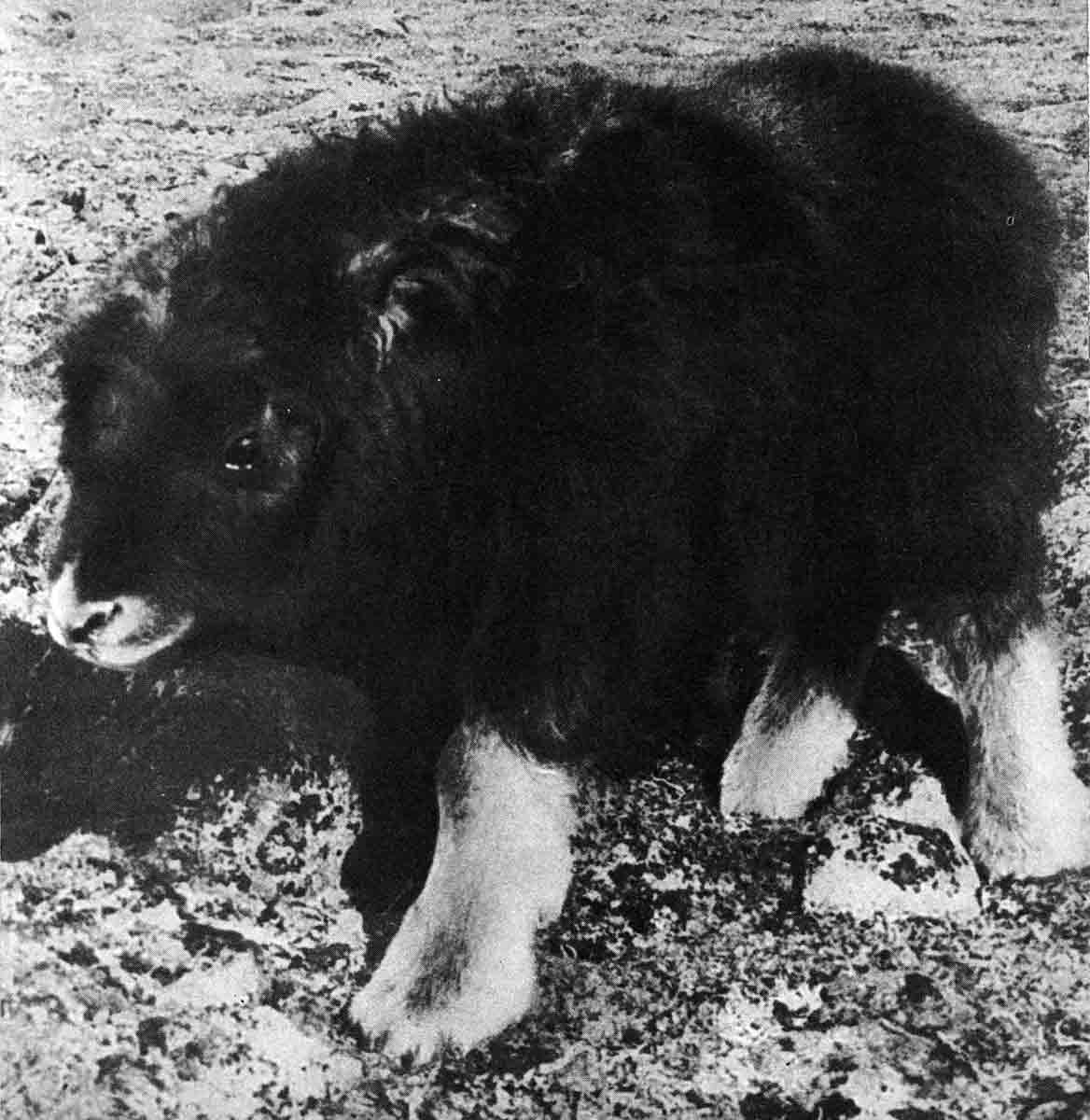 ...Есть у берегов Аляски, в Беринговом море, островок Нунивак. Все чаще его теперь называют островом Мускусного быка. Этот остров оказался очень удобным для размножения редких животных. В 1930 году на Нуниваке было выпущено 33 теленка, привезенных из Гренландии. Теперь стадо выросло до 500 голов. Время от времени специальные экспедиции отлавливают молодых телят, грузят их на самолеты и отправляют в те места, где еще нет мускусных быков. Конечно, переселять животных можно лишь туда, где не слишком жарко и где есть травянистые пастбища. Такие места в Арктике протянулись от Аляски и Гренландии до Чукотки и Таймыра. Не так уж много овцебыков сейчас на земле — не больше десяти тысяч. И пройдет немало времени, прежде чем воскресшие свидетели ледникового периода смогут вновь заселить оставленные ими тысячелетия назад пространства.