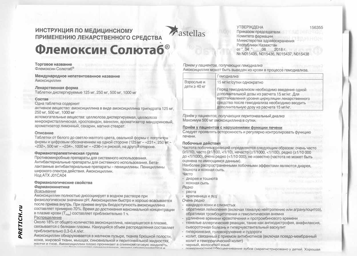 Кратко скажу - это антибиотик группы пенициллинов широкого спектра действия, разрушающийся пенициллиназой (пенициллин полусинтетический). В данном конкретном случае, эти таблетки были куплены для мамы "по совету" терапевта из поликлиники. Не скажу, что цена на него маленькая, но если это действенный препарат, то можно и заплатить... многое зависит от дозировки - флемоксин 250 является самым ходовым. Но я брал 500 мг. В общем-то, он должен отпускаться по рецепту, но его можно купить и просто так (по крайней мере, в 2019 году).