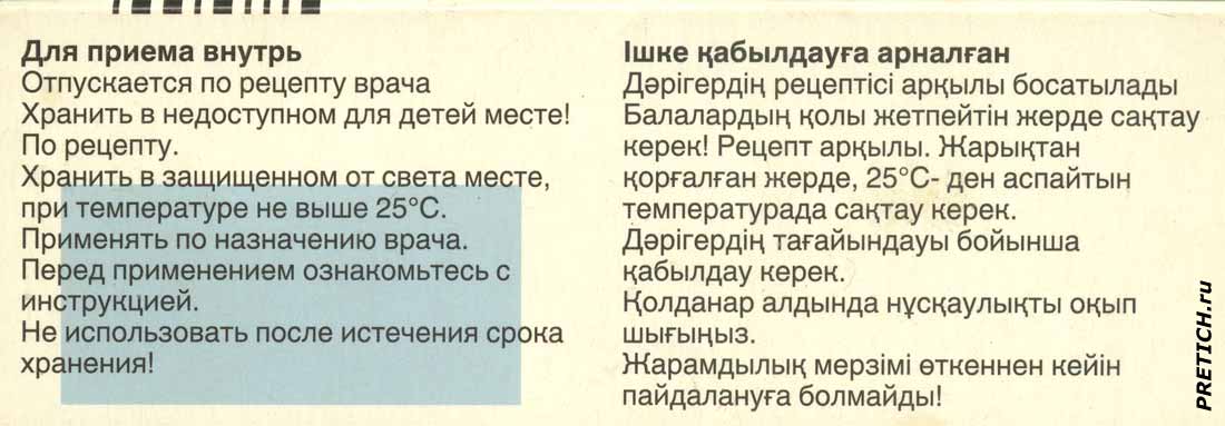 Сбоку есть такие данные: для приема внутрь. Отпускается по рецепту. Хранить в недоступном для детей месте... и так далее.