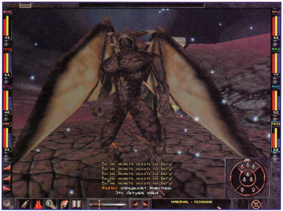 Будучи знатным краеведом, я провел небольшую разведку по городам и весям Доминуса. При этом выяснилось, что хайгарди живут в Арнике, столице планеты. В одну сторону от Арники располагается Тринтон, где обитают трини, а далее за болотами окопались ти-ренги неподалеку от бывшей, так сказать, резиденции Мартена. А если идти из Арники в другую сторону, можно попасть сначала в заброшенный монастырь Хайгарди, а потом на дорогу, ведущую к горе Гигас, обиталищу ампани и горам, где находится замок рапаксов. Более подробные указания я вам сейчас не буду выдавать, чтобы не портить последующее впечатление от игры. Ну, да, да, вы правильно догадались, я дальше и сам не знаю...