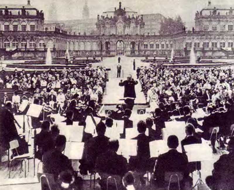 В Дрездене (ГДР) концерты симфонической музыки часто устраиваются под открытым небом. На снимке: концерт в дрезденском Цвингере.