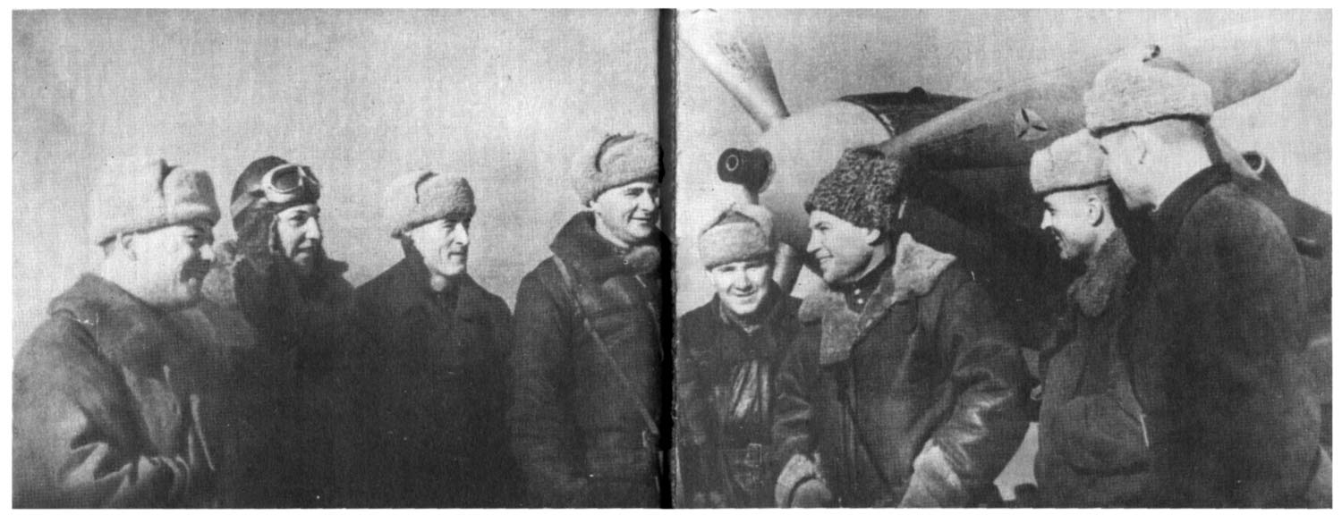 Летный состав 55-го иап. В первом ряду: Л. Тетерин, В. Фигичев, П. Крюков, А. Покрышкин.