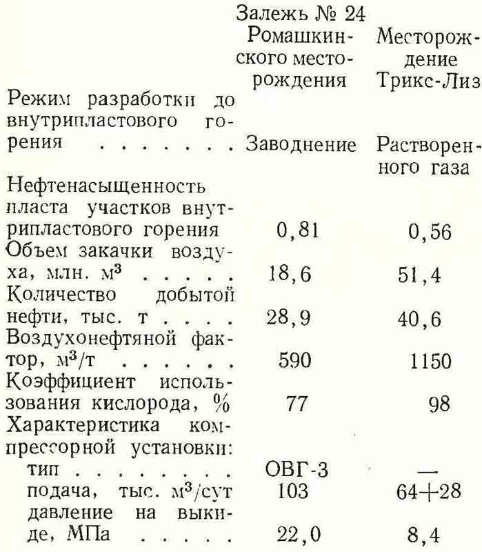 Результаты внедрения ВВГ на залежи № 24 и месторождении Трикс-Лиз, на котором в 1968-1972 гг. осуществлялся процесс сухого горения, признанный технологически и экономически успешным [4], следующие.