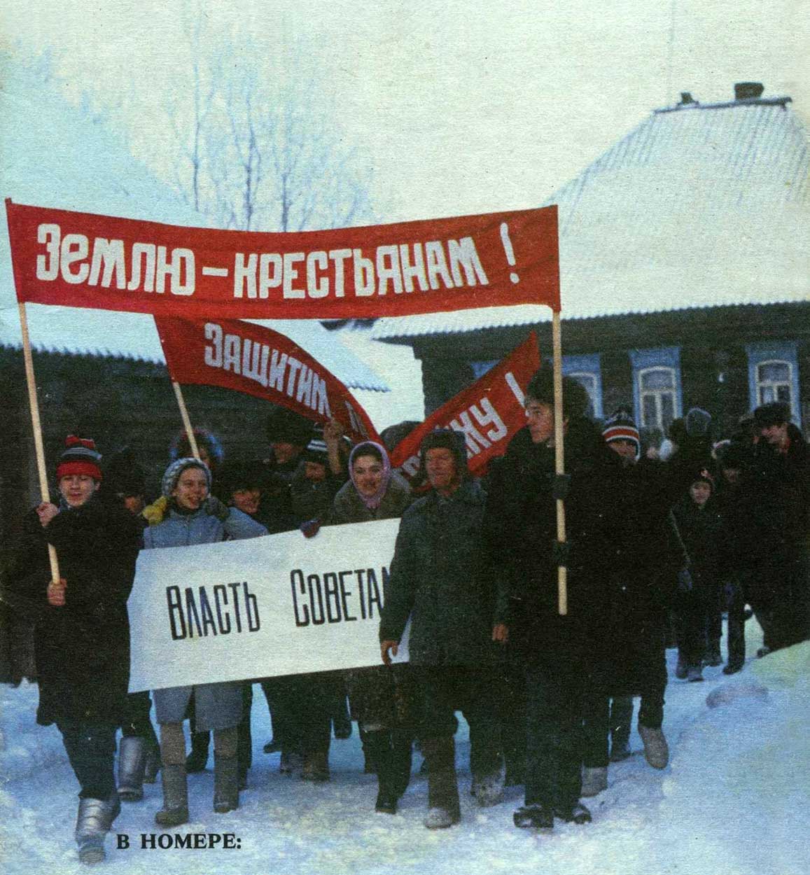 В феврале в селе Хрящи Кавернинского района Горьковской области ребята-комсомольцы прошлись по улице с лозунгом «Землю — крестьянам». Школьники, учителя, жители села, секретарь комсомольской организации колхоза. Сей факт и запечатлел наш фотокор.