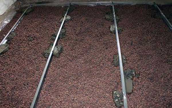 - Керамзит – плюсы: экологичен, высокая огнестойкость. Минусы: для сохранения тепла потребуется насыпать толстый слой материала – 15–20 см. Применение: утепление пола.