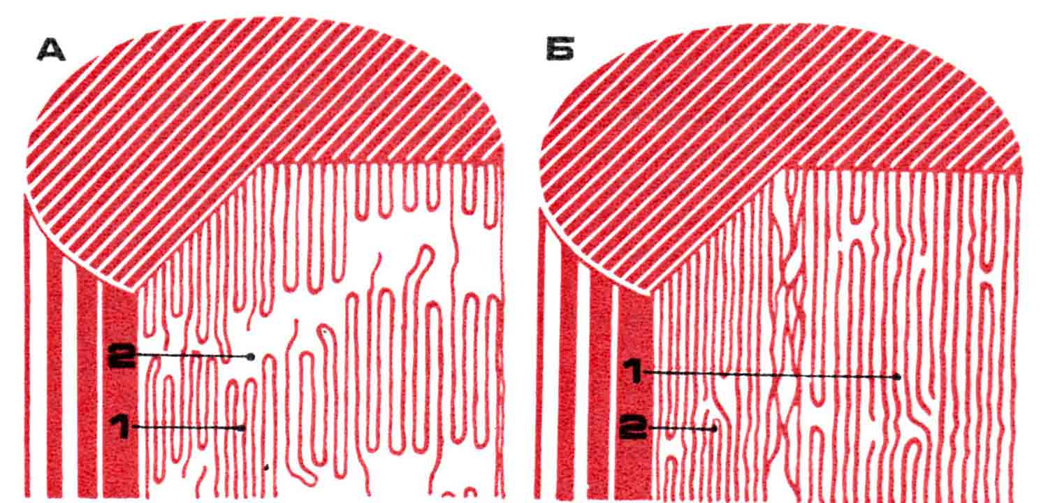 В обычных синтетических волокнах длинные молекулы полимера — макромолекулы — располагаются параллельно друг другу, объединяясь в специфические образования — кристаллиты, ориентированные вдоль волокон. Но между кристаллитами есть участки, где молекулы расположены менее компактно. Это так называемые аморфные области (рис. слева). Именно они-то и ослабляют нить, снижают ее прочность на разрыв.