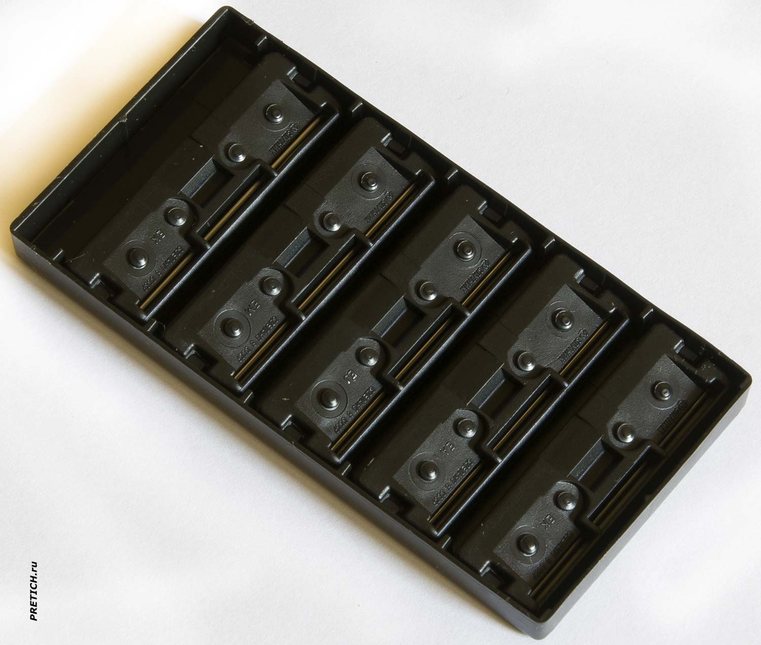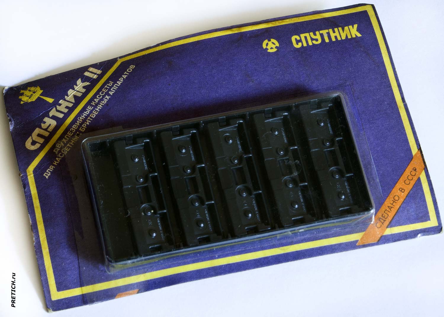 Картонное основание, сверху блистерная упаковка (которой, как известно, в топорно-лапотном СССР тоже не было). В комплекте пять кассет, они уложены в специальный пластмассовый лоток.На обратной стороне данные производителя: Минлегпищемаш ЛМО "Спутник", филиал №4. Адрес: 193029 Ленинград, ул. Крупской, дом 5.