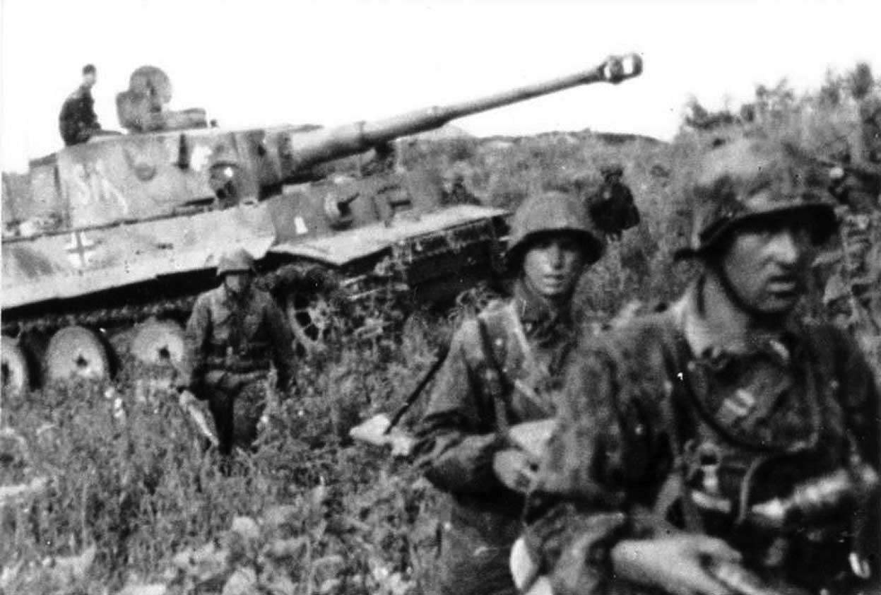Немецкие солдаты перед танком «Тигр», во время Курской битвы в июнь-июль 1943 года