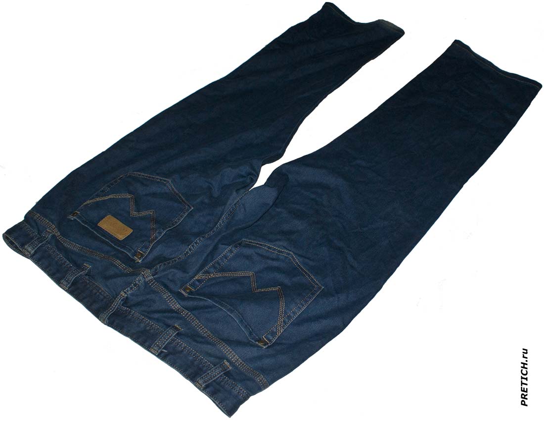 Задние карманы пятиугольником, на них тройным швом вышита буква W - как узор. В верхних углах снова заклепки. На правом кармане лейбла - кожаный, или из кожзаменителя прямоугольник, на котором только логотип Warangler.