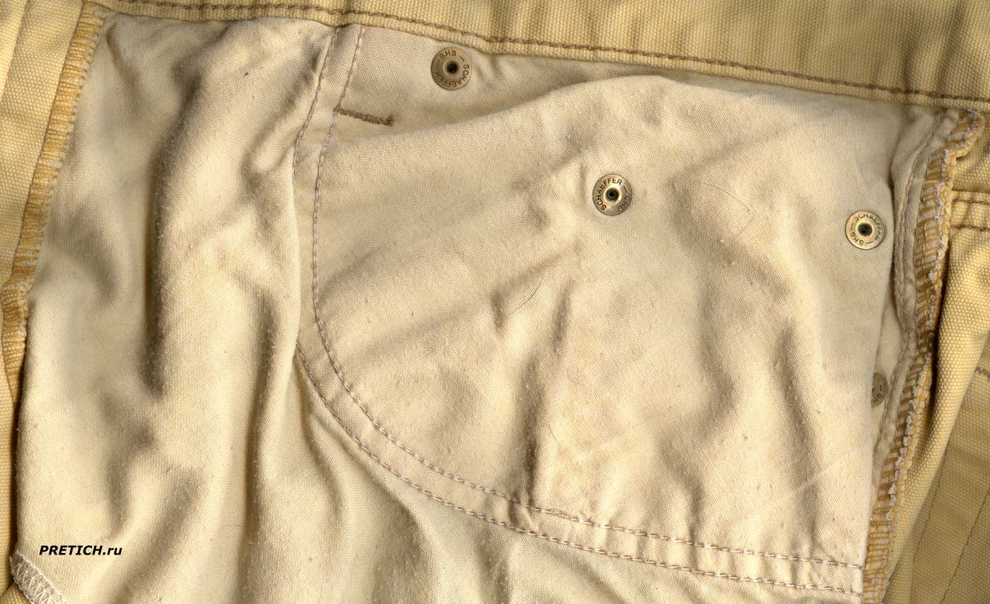 Передние карманы изнутри... Ткань могли бы использовать и покрепче. Смотрим, как обработаны швы изнутри.