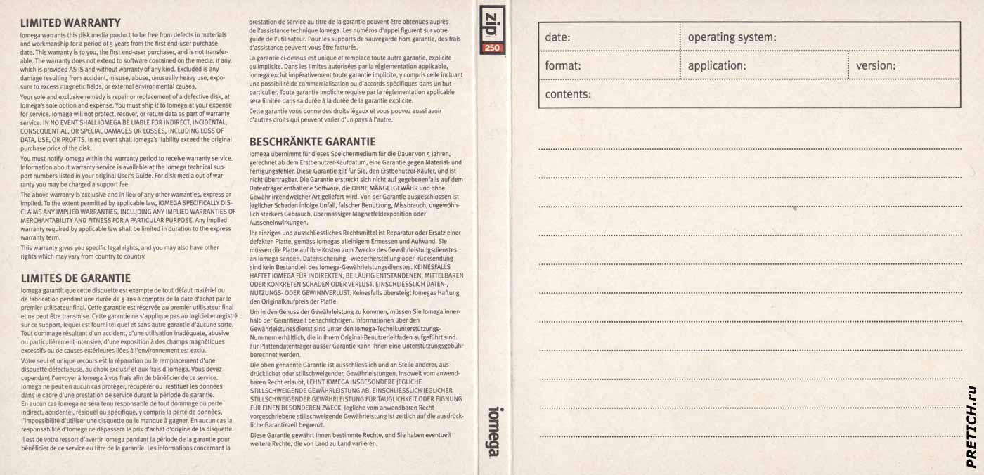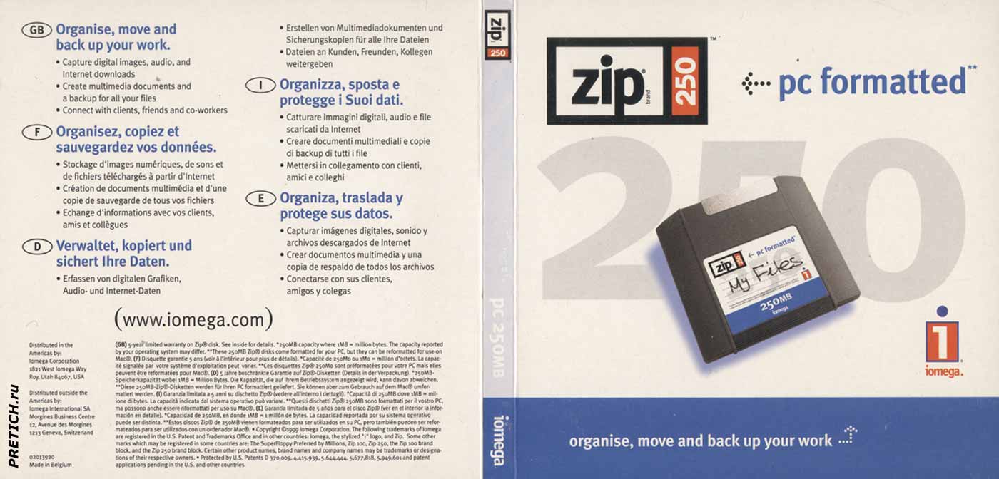 Дискета ZIP 250 iomega упакована в прозрачную пластмассовую коробку, которая напоминает коробки компакт-кассет из 80-х годов...