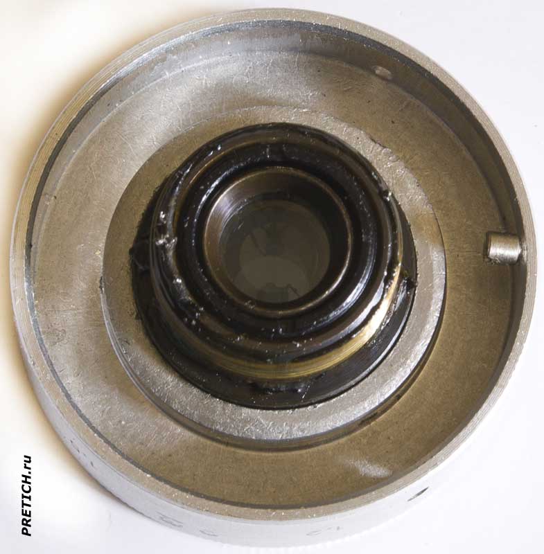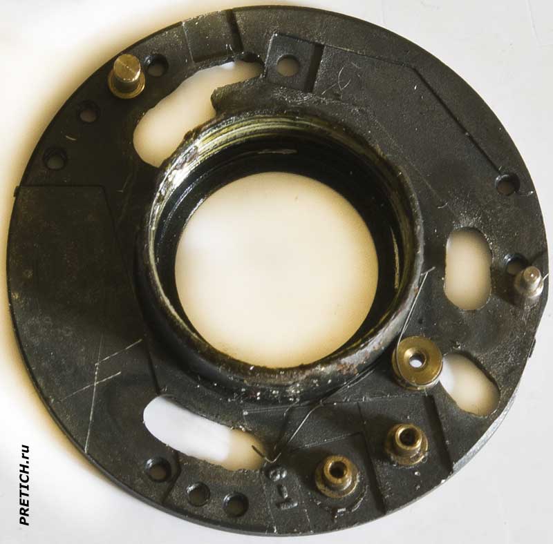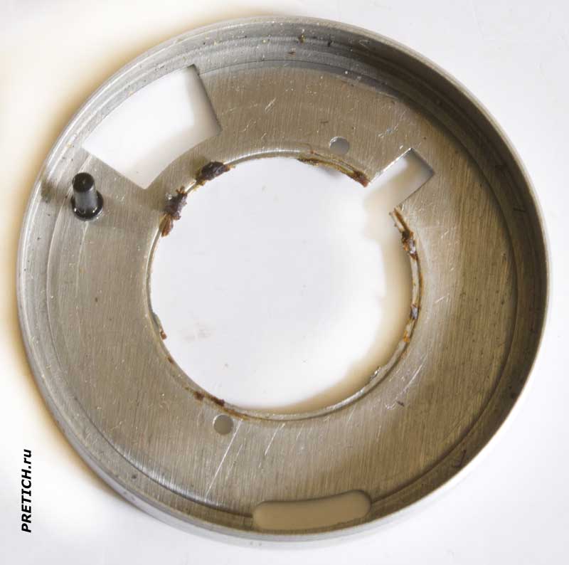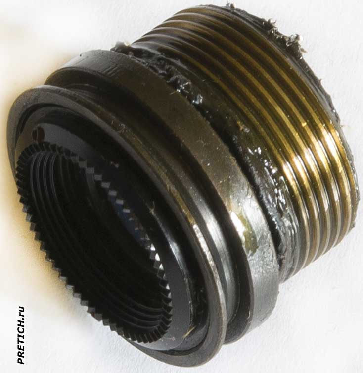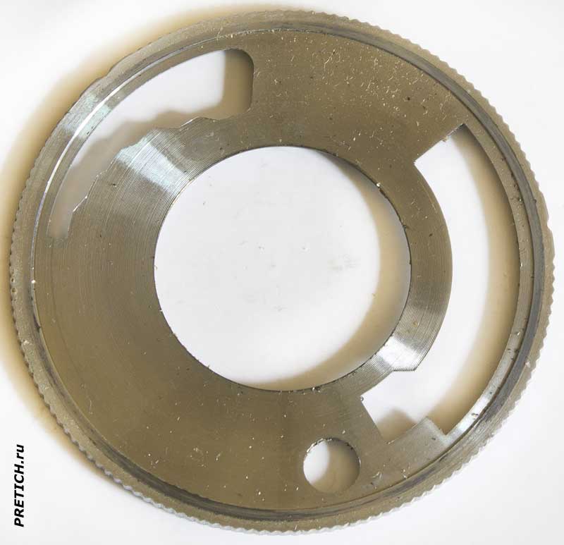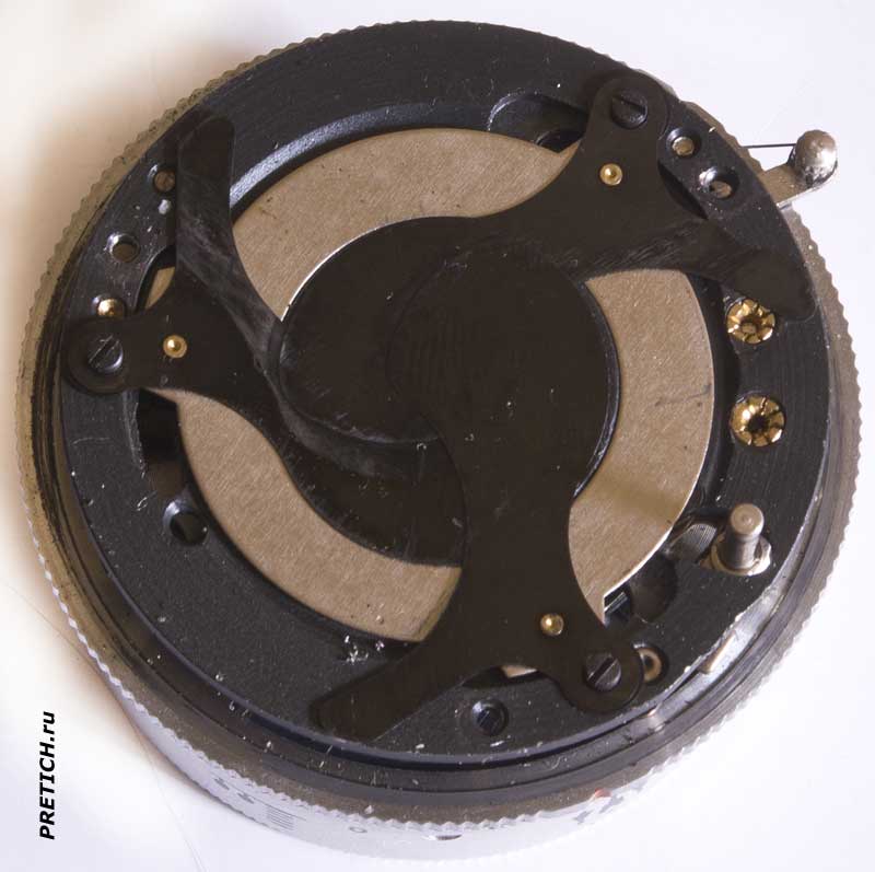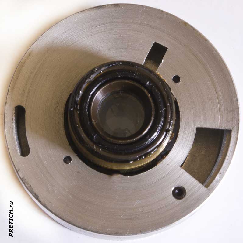 Алюминиевый корпус затвора, посередине видим лепестки затвора... Снимаем и его - обратная сторона.