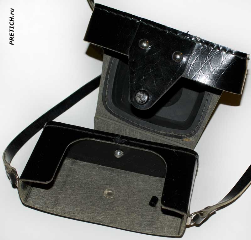 Фотоаппарат продавался в таком же крепком и жестком чехле, как и Смена-8М, наверное, он был один и тот же... Такой же пластмассовый выступ защищал объектив... Чехол, одним словом - на случай ядерной войны!