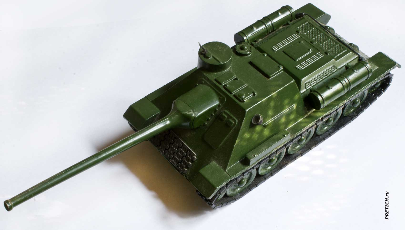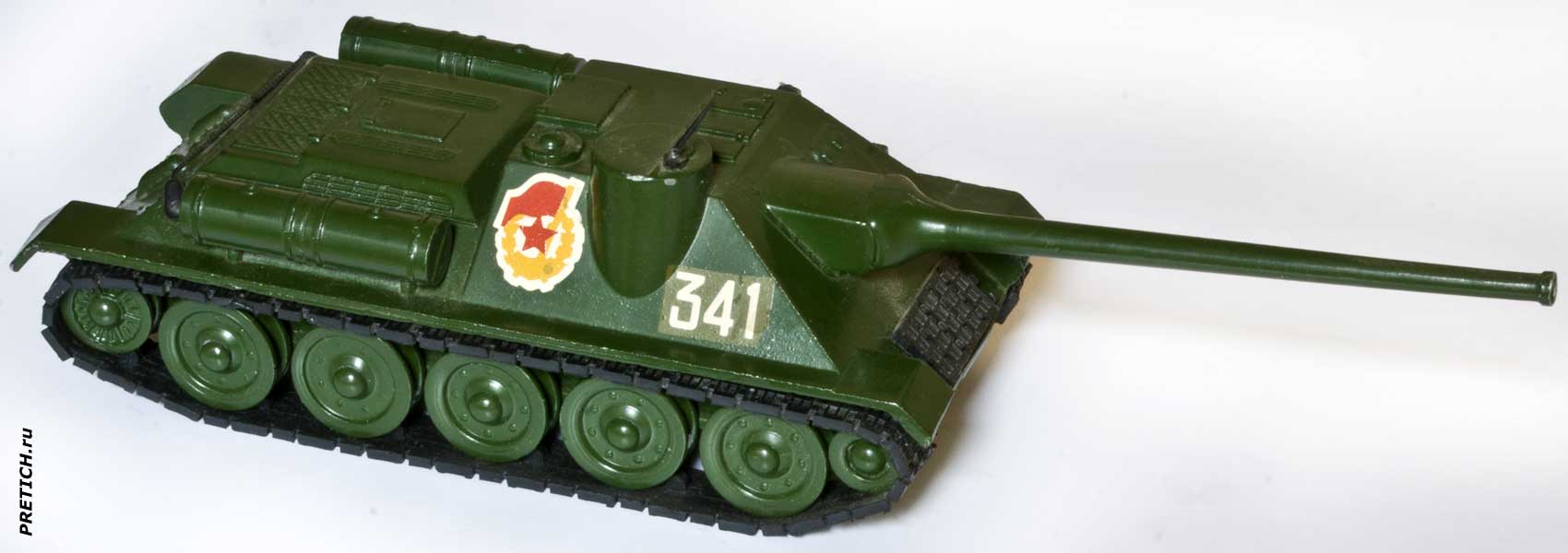 В общем и целом, модель-копия СУ-100 действительно таковой и является, а не игрушкой для детей 7-14 лет... как игрушка она не очень - гусеницы сваливаются. Сделана вполне хорошо, на уровне того времени, не уступая зарубежным образцам.