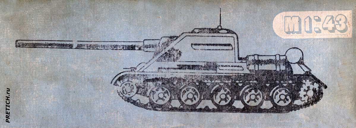 На верхней стороне изображена сама СУ-100 и обозначен ее масштаб - М1:43