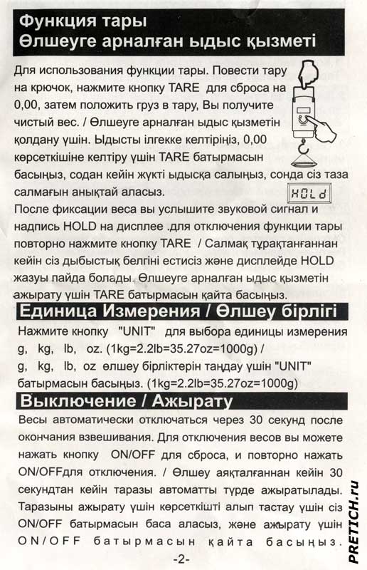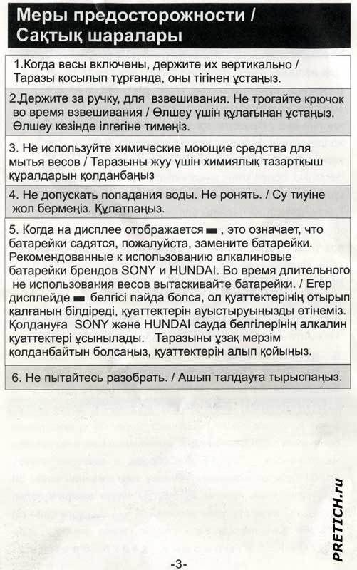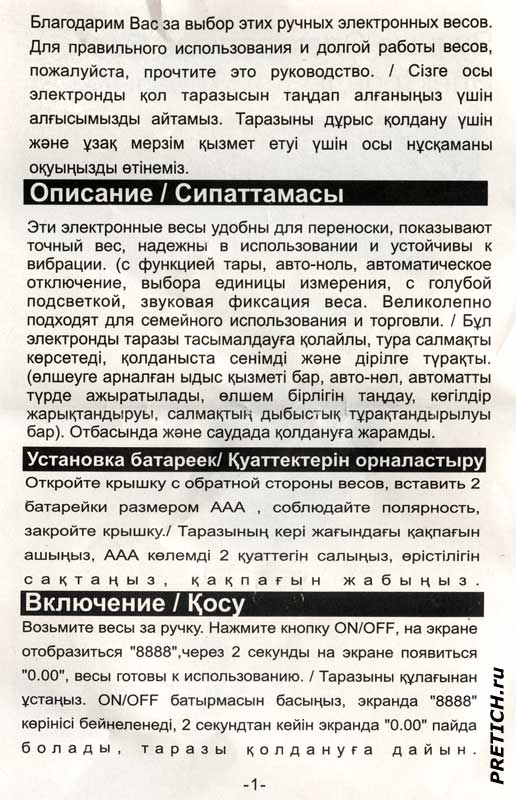 Теперь инструкция, она на русском и казахском языках. Короткая и скупая. Впрочем, как взвешивать и без нее понятно. Тем не менее, я ее оцифровал и выкладываю, может быть, кому-нибудь пригодится.