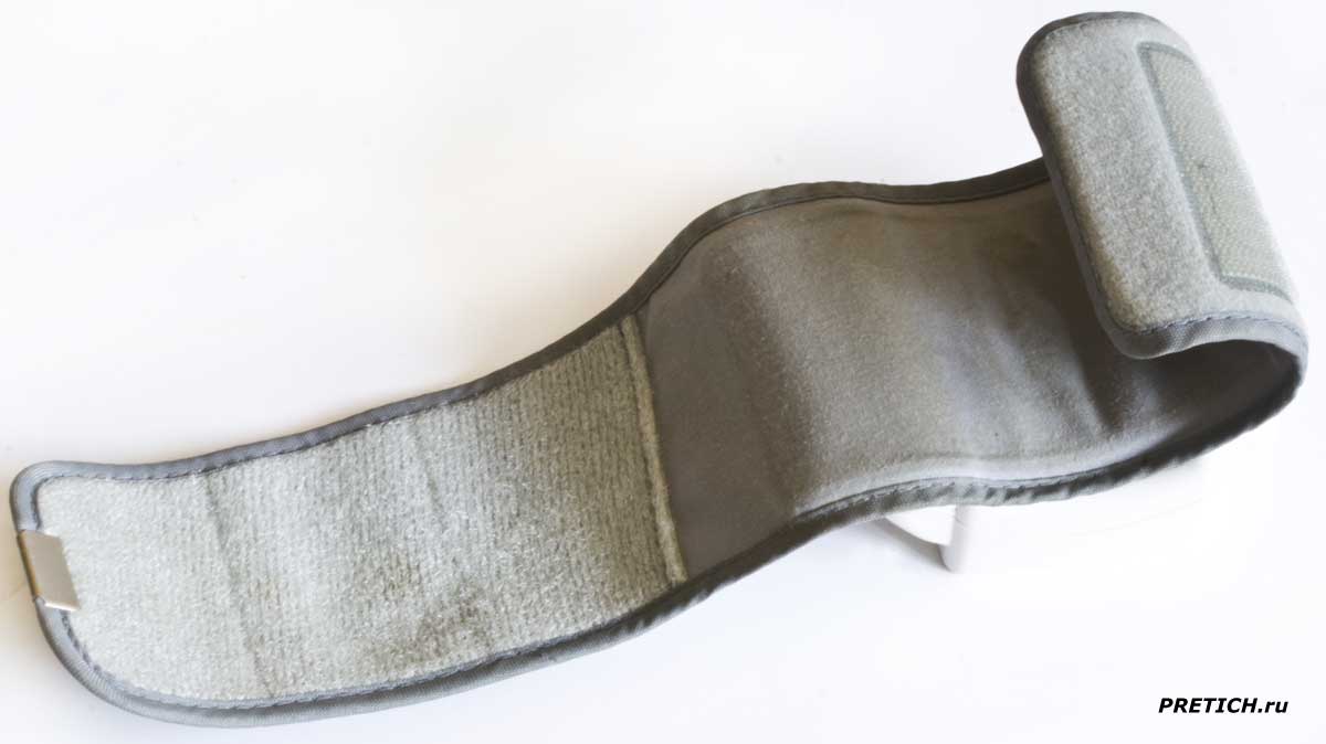 Режем манжету... Хотя аппарат и рабочий, но что не сделаешь во благо концессии! Итак, внутри тряпичного "обрамления", находится герметичный мешочек, или "кармашек", с двумя пипками... Так как тонометр для запястья, есть пластиковая вставка, - которая и формирует захват запястья руки. Ну, кажется, разобрали все.