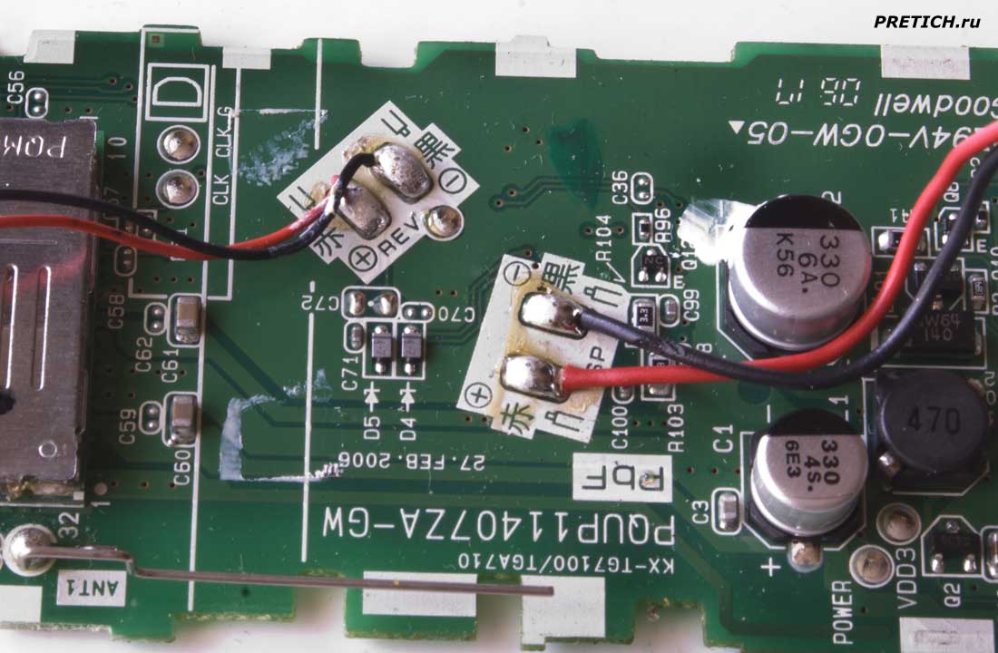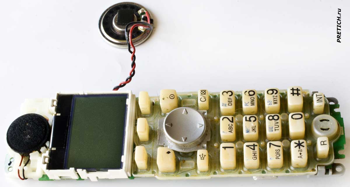 Для начала освобождаем плату от "дополнений" - вот так припаяны динамики, их две штуки...