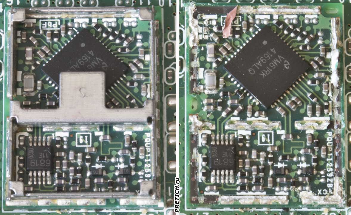 Снимаем экран, снимаем все... Здесь две микрухи: VM61RK 4169ALQ и вторая десятиногая 6819 11E... В общем, на этом с базой все.