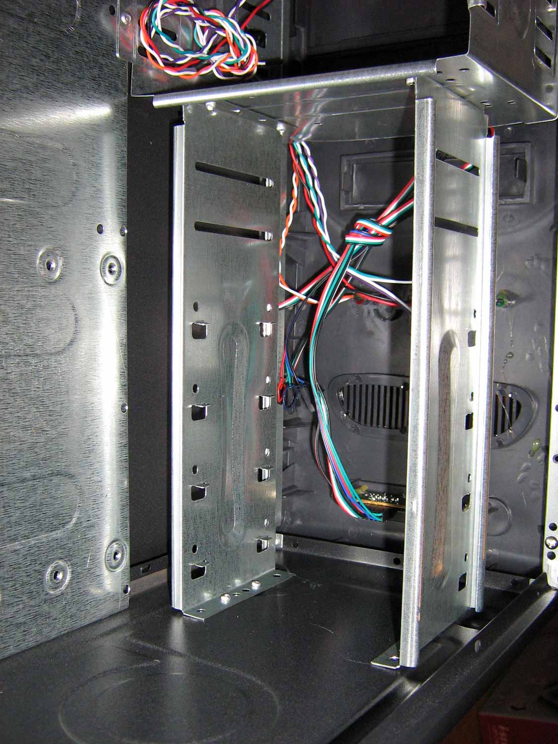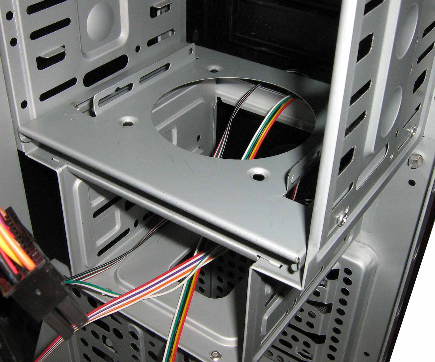 Вот на фото мы видим плохую завальцовку — корзина для накопителей и оптических приводов частично завальцована, для придания тонкому металлу жесткости, все остальные кромки острые и не имеют никакой жесткости — такой корпус будет «шуметь».