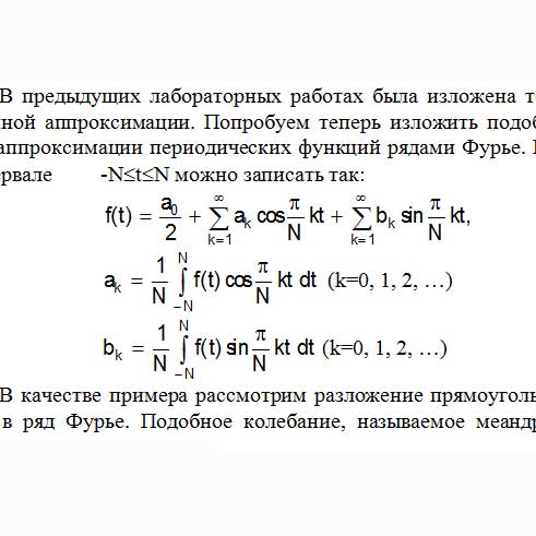 В предыдущих лабораторных работах была изложена теория много-членной аппроксимации. Попробуем теперь изложить подобную теорию для аппроксимации периодических функций рядами Фурье