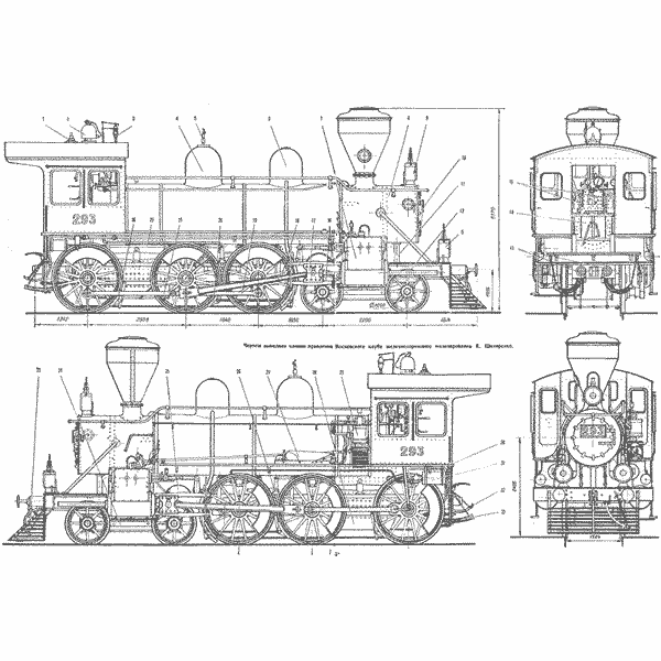 Здесь вы можете скачать чертежи исторического паровоза №293, который был изготовлен в США и на котором В.И. Ленин прибыл из эмиграции, из Финляндии, в Россию в 1917 году.