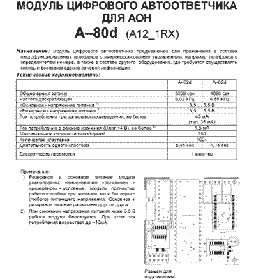 Модули цифровых автоответчиков для АОН A-42dm, A-24dm (A11-5x), A-80d (A12-1RX) - инструкции, подключение, схемы