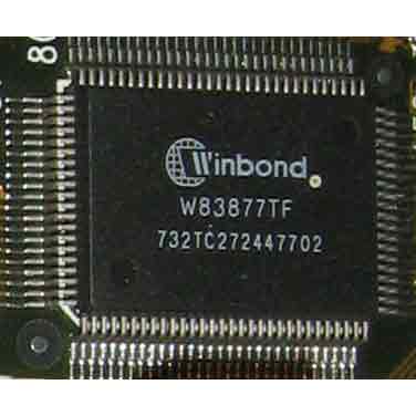 Winbond W83877TF - контроллер I/O старинных материнских плат. Скачать даташит можно здесь.