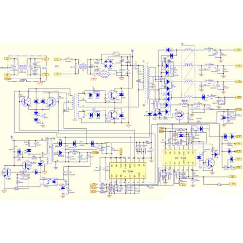 Схема типового ATX блока питания Microlab M-180 400W, такая схемотехника присутствует в большинстве БП до 400-450 Вт, 2004 год.